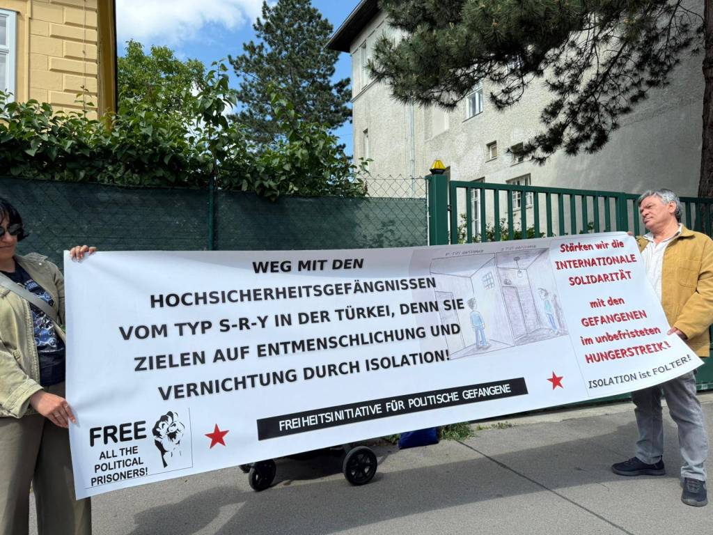 Also in Vienna today a protest by the Resistance Council in front of the consulate of Turkey to support the demands of the 9 prisoners on hungerstrike and to salute the efforts of TAYAD