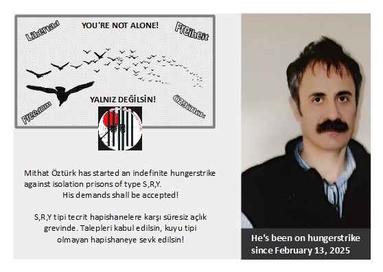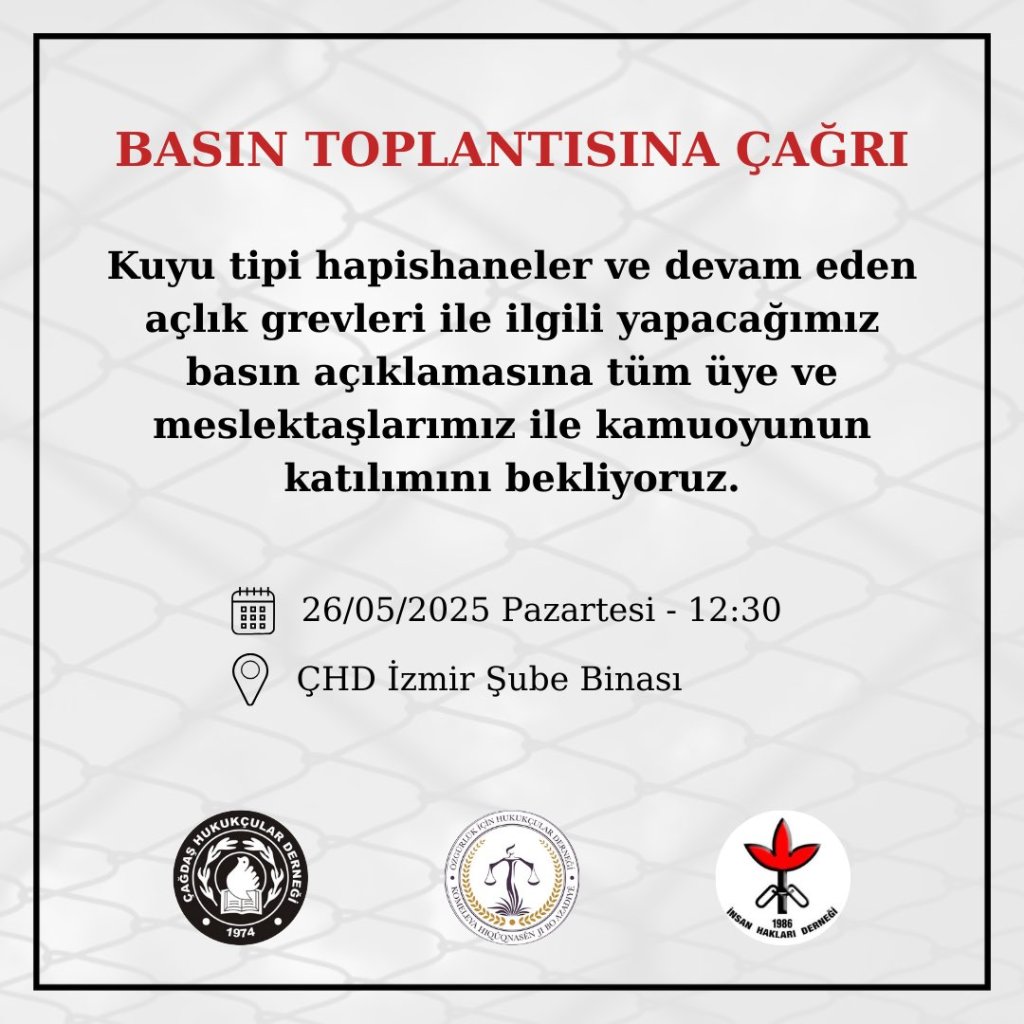 “We wait everyone to the press conference we will hold on the hunger strikes in prisons in Istanbul, Çorlu, Izmir, Ankara and Antalya demanding the closure of Y, S type and YGC (high security prisons) known as well-type prisons.”