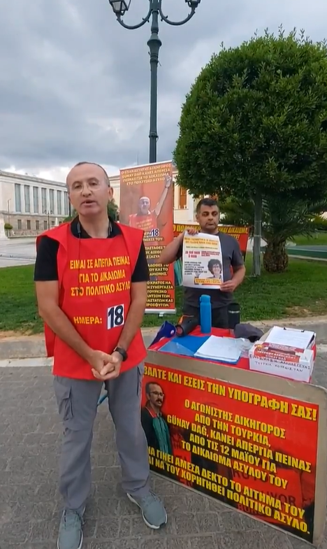 People’s Lawyer, refugee from Turkey, Günay Dağ, who is on hunger strike also for his right to asylum, to have granted his passport and residence rights and for the end of attacks on political refugees by the co-operation of Greece and Turkey made a statement today for Zehra Kurtay also.