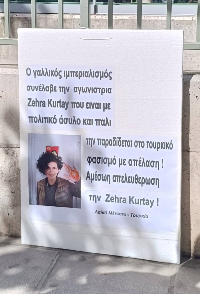 Yesterday, in front of the French Consulate in Thessaloniki, Greece, there was a rally against the arbitrary extradition procedure agianst Zehra Kurtay.