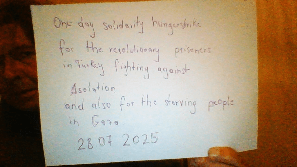 To support 6 political prisoners in their indefinite hunger strike against the isolation prisons of type S, R and Y in Turkey, today a comrade of the Alliance Against Imperialist War in Austria is launching a 1-day solidarity hunger strike.