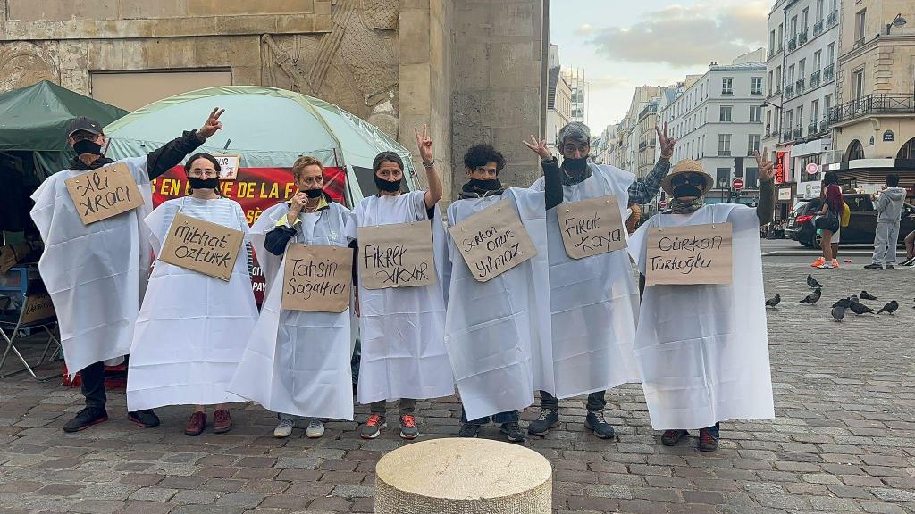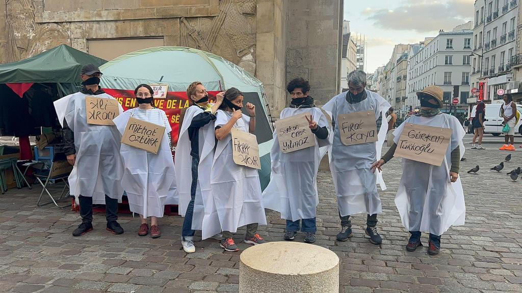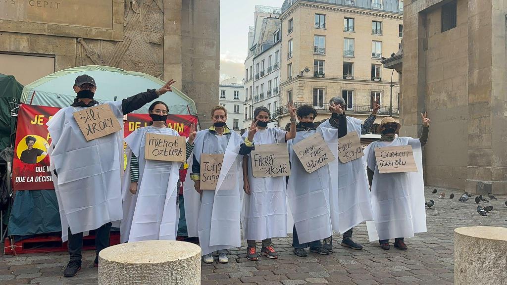 Another impressive example of solidarity action for Serkan Onur Yilmaz, on the 285th day of his death fast, was performed in front of the resistance tent of political refugee Zehra Kurtay in Paris.