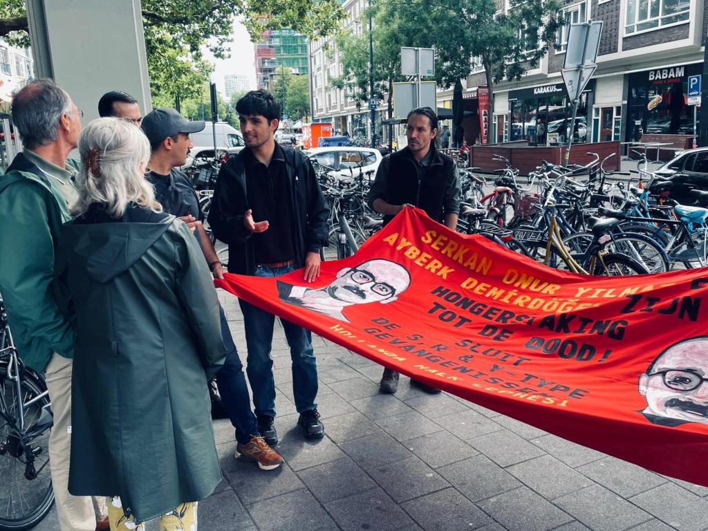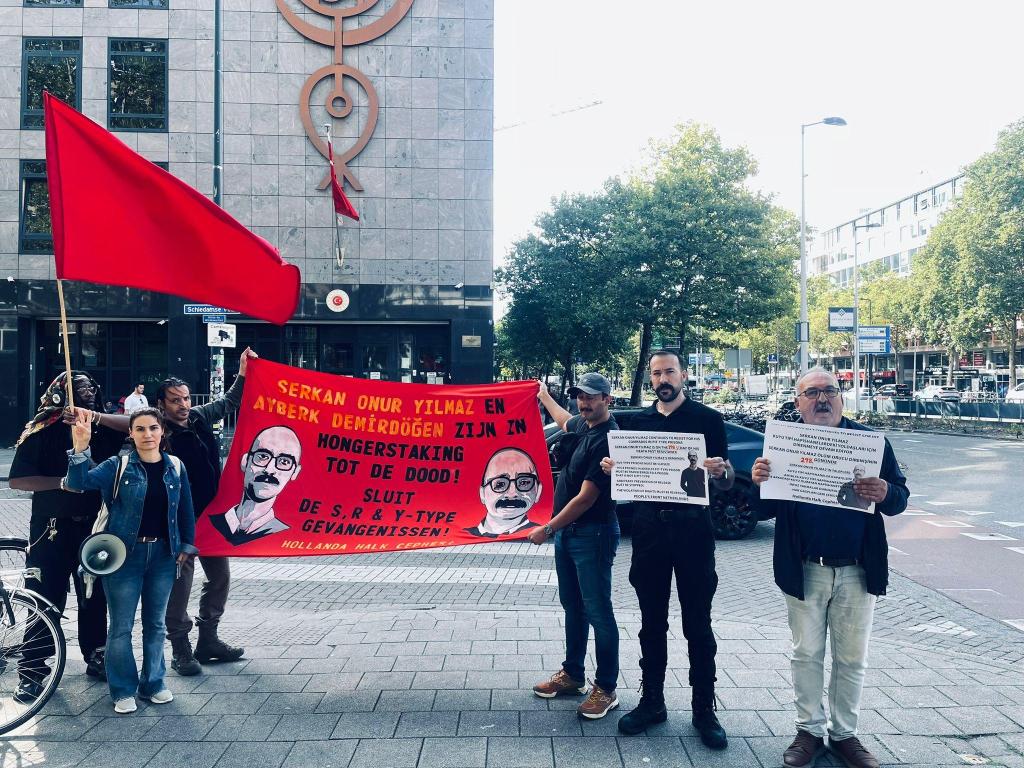 On Thursday, September 4, the Popular Front of the Netherlands held a rally in frot of the Consulate General in Rotterdam and read a press statement. They stressed the urgency in accepting the demands of hungerstrikers against S, R & Y type isolation prisons in Turkey. The protest group especially draw attention to the Serkan Onur Yilmaz and Ayberk Demirdögen, carrying a banner of the two death fast resisters.