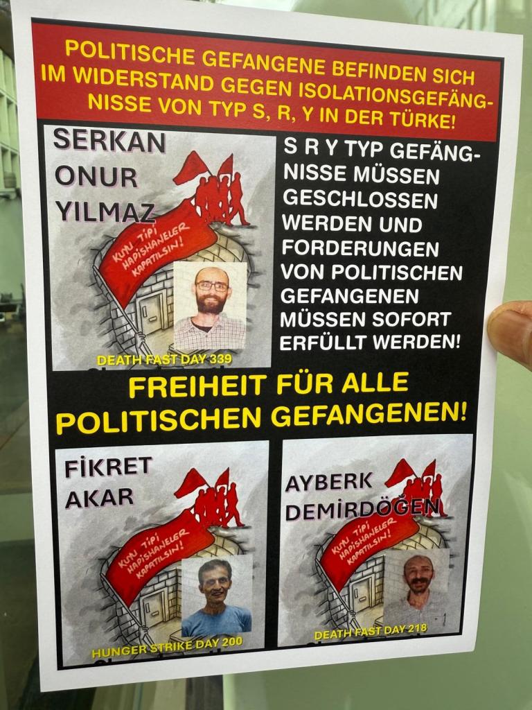 In Vienna, a solidarity action was held in front of the General Consulate of Turkey by the Freedom Initiative for Political Prisoners and Resistance Council. Posters with the number of resistance days of Serkan, Ayberk and Fikret were displayed and some flyers with a call for action were spread.