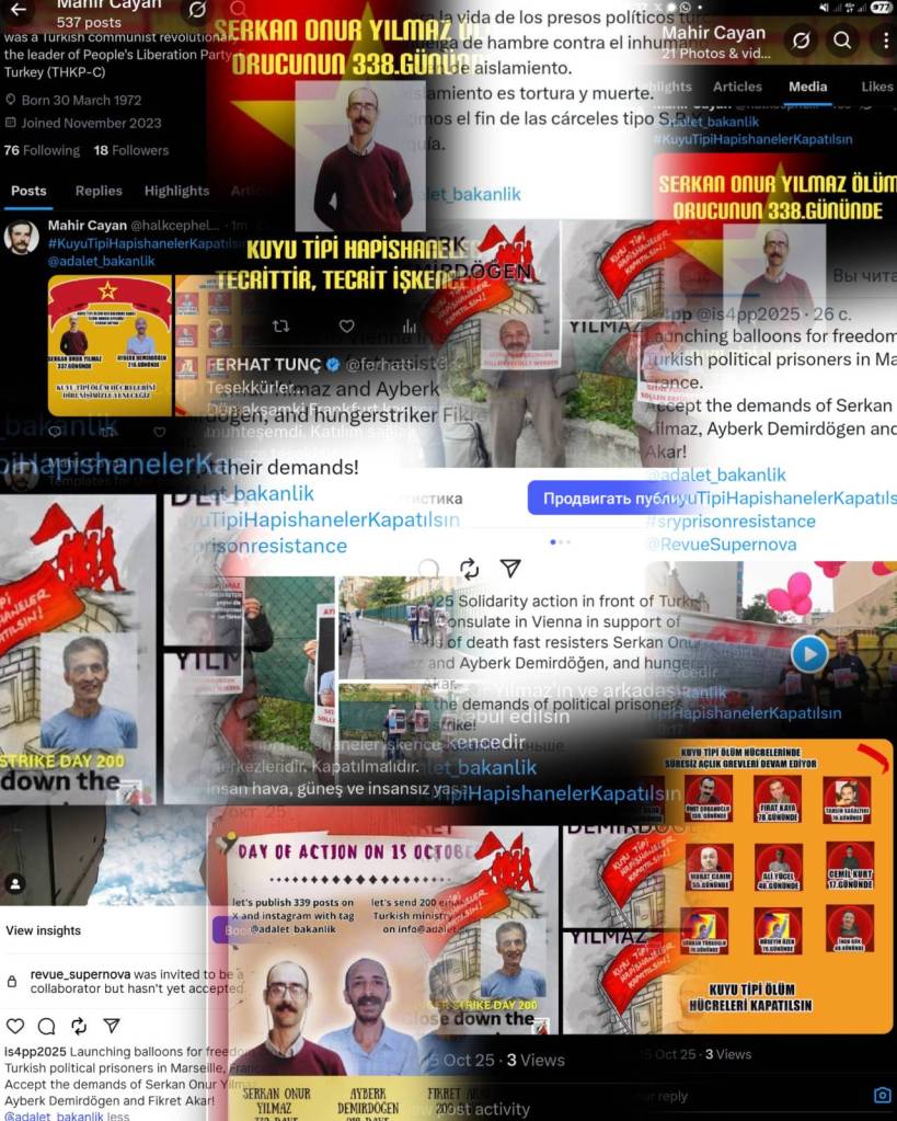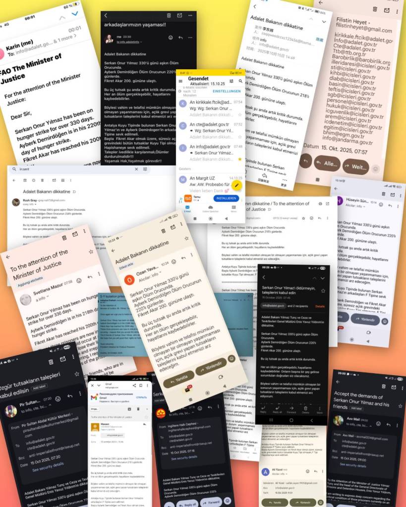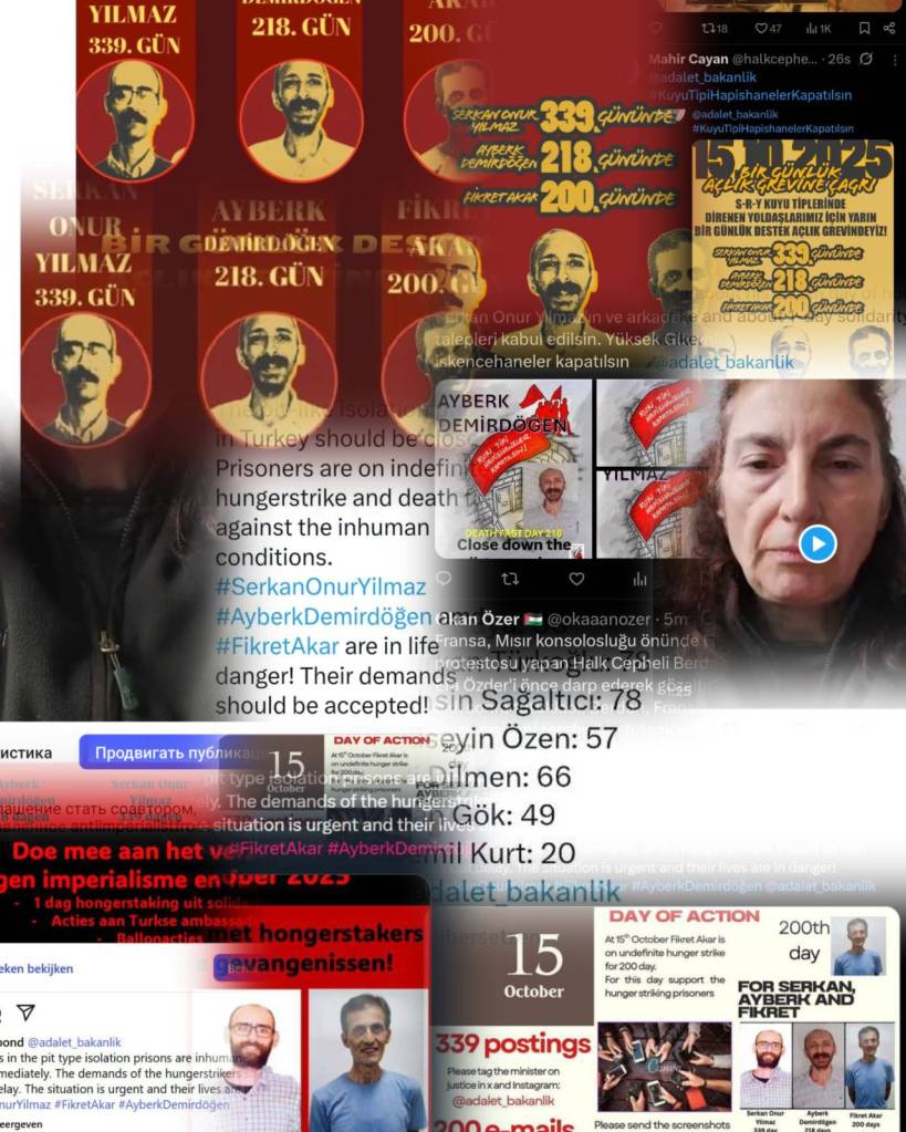 To make the voices of the hunger strikers and their life-threatening health state heard, calls were made to send e-mails to the Ministry of Justice in Turkey and to share posts on X and Instagram, tagging the Ministry of Justice. (@adalet_bakanlik)