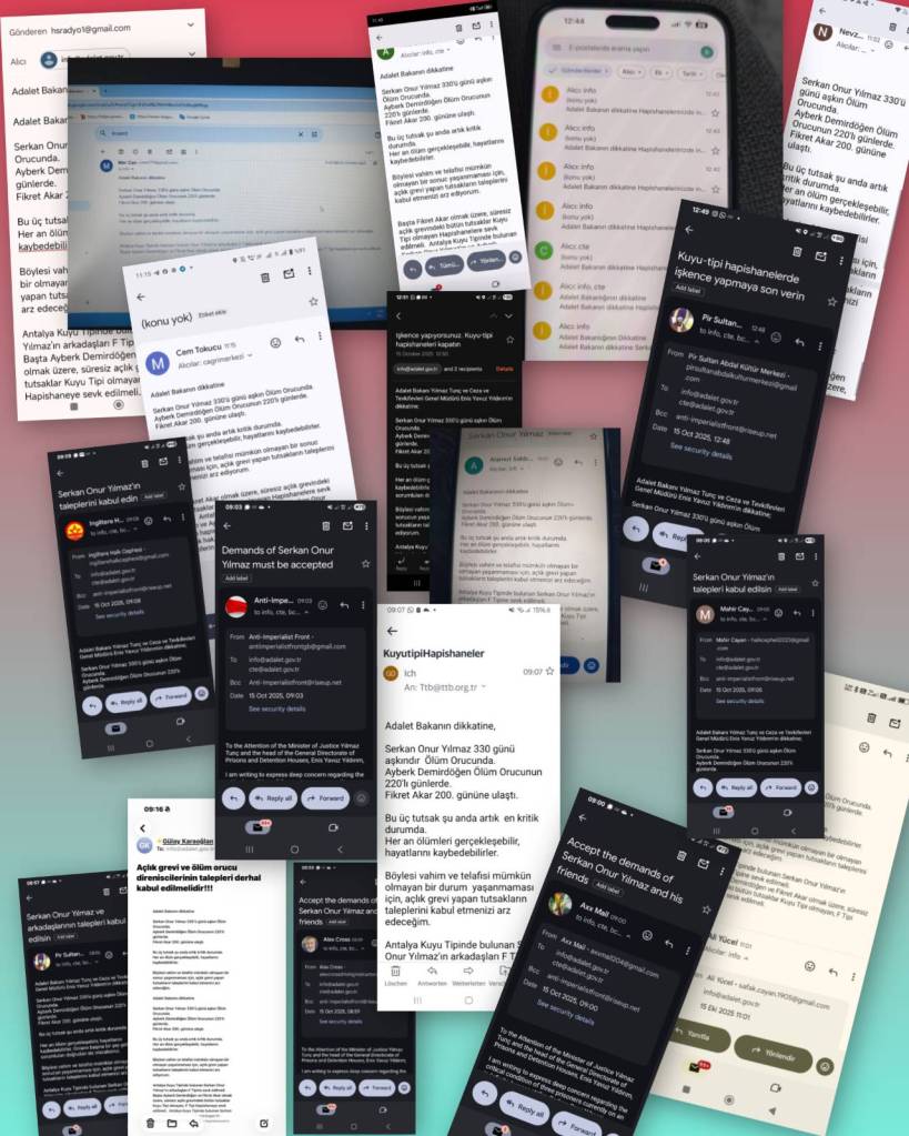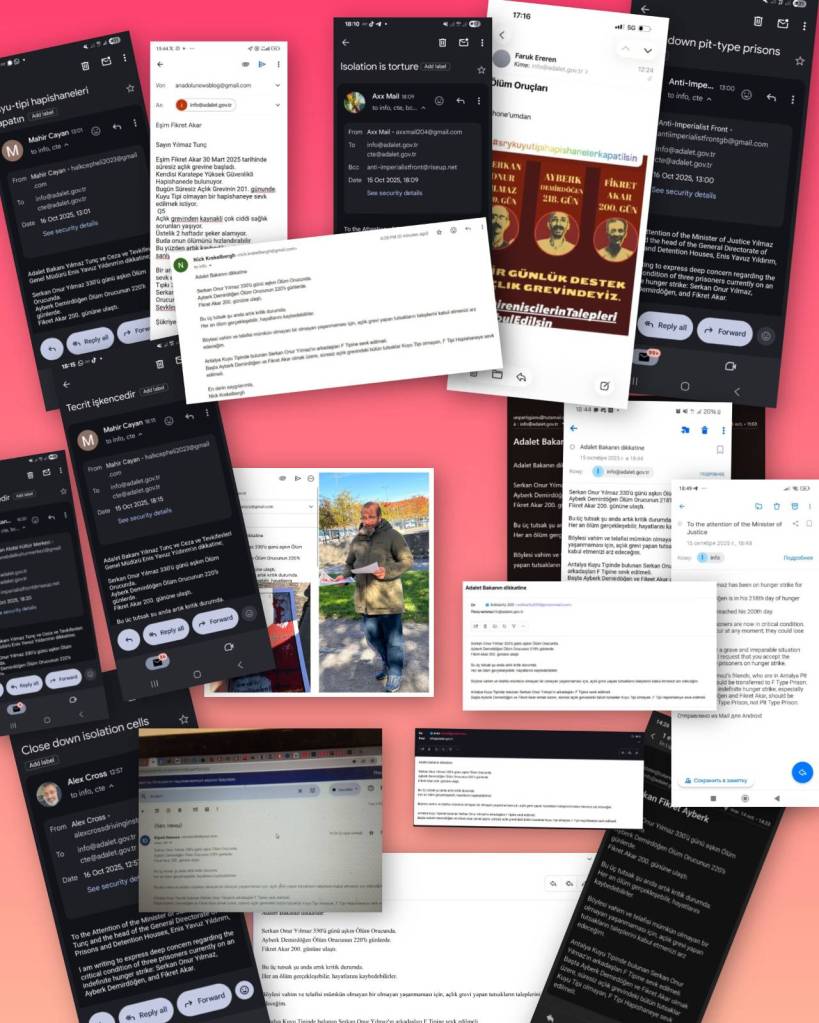 As to our knowledge, on October 15, a total of 202 e-mails were sent to the Ministry of Justice, calling the authorities to recognize the just demands of the prisoners on hunger strike and death fast and to end isolation torture in pit-like prisons.