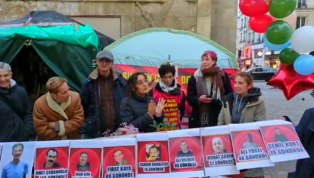 An impressive action of solidarity was held symbolically at the place of another resistance in Europe, the resistance tent of Zehra Kurtay, who is continuing her indefinite hunger strike for the right to political asylum in France for over 100 days.