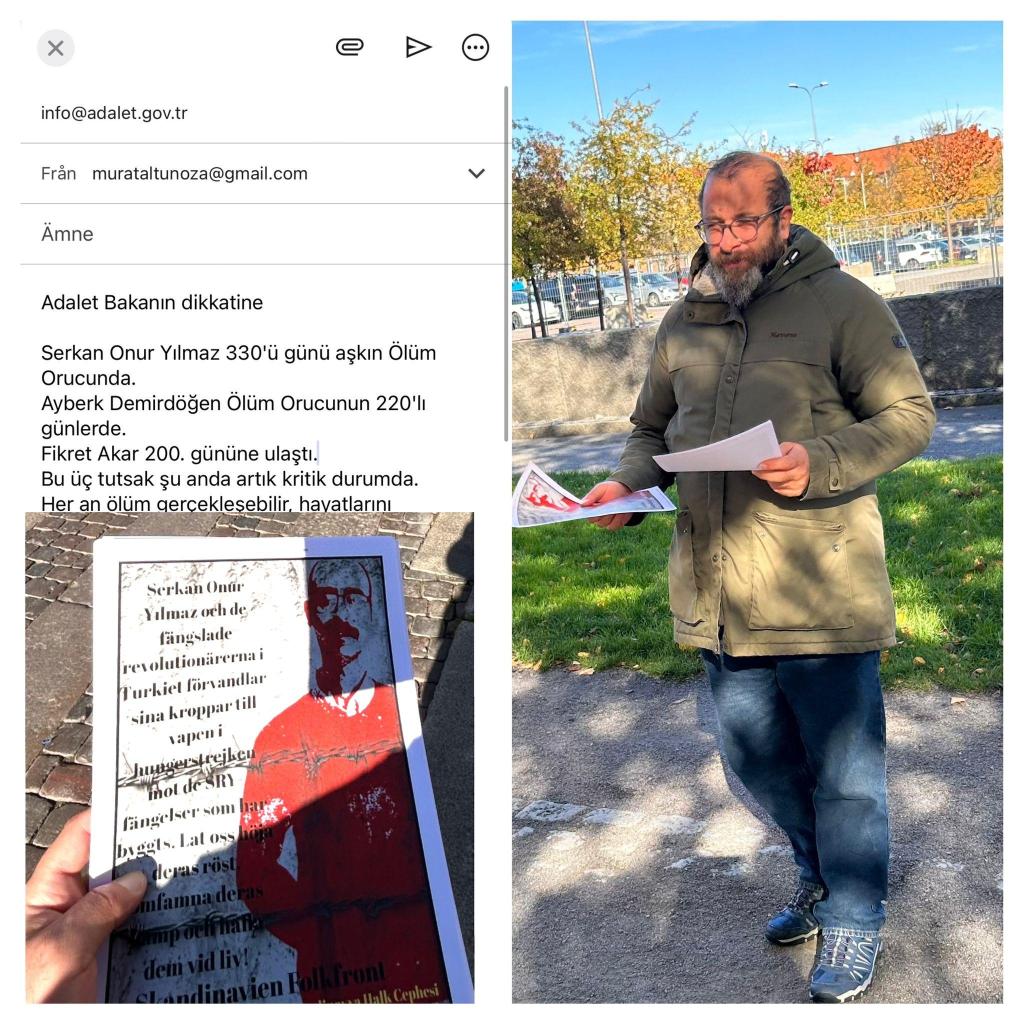 In support of the demands of the hunger striking prisoners, rallies were organized in front of embassies and general consulates of Turkey in different cities with the posters of Serkan Onur Yilmaz (on death fast for 339 days), Ayberk Demirdögen (on death fast for 218 days) and Fikret Akar (on indefinite hunger strike for 200 days)