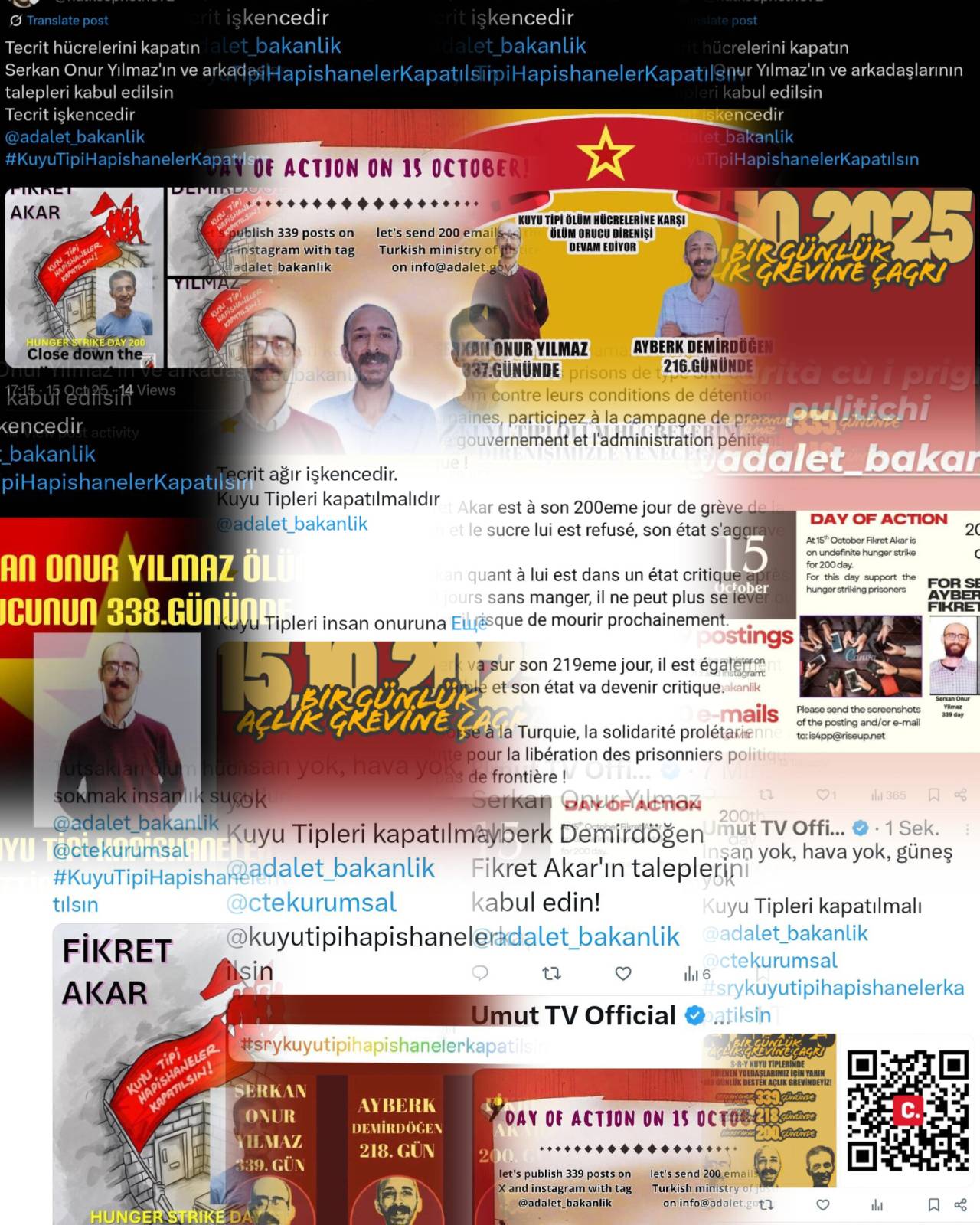 To make the voices of the hunger strikers and their life-threatening health state heard, calls were made to send e-mails to the Ministry of Justice in Turkey and to share posts on X and Instagram, tagging the Ministry of Justice. (@adalet_bakanlik)
