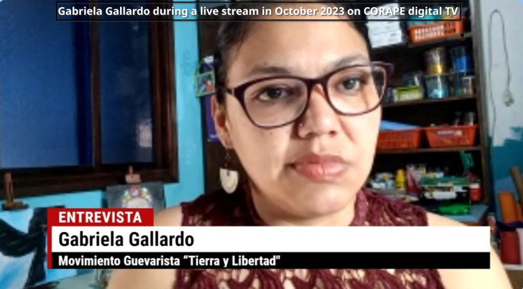 Gabriela Gallardo, a militant of the Guevarista Tierra y Libertad Movement (MGTL), has been deprived of her liberty since then. The Ecuadorian state keeps her imprisoned in inhumane conditions, without evidence, without due process, and under unfounded accusations of “terrorism,” which are part of a new offensive to criminalize those who fight for a more just and supportive Ecuador.