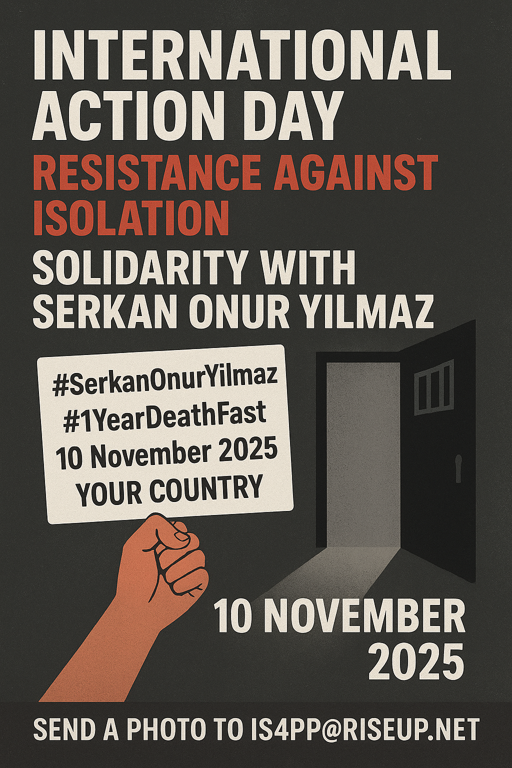 10 November 2025 marks the first anniversary of Serkan Onur Yilmaz’s hunger strike, which later turned into a death fast. Serkan Onur Yilmaz is a political prisoner in Turkey, who was transfered to the isolation cells of the new high security prison in Antalya. He won his resistance and was transferred, but his 8 comrades weren’t. So he decided to continue the fight for his comrades in isolation.