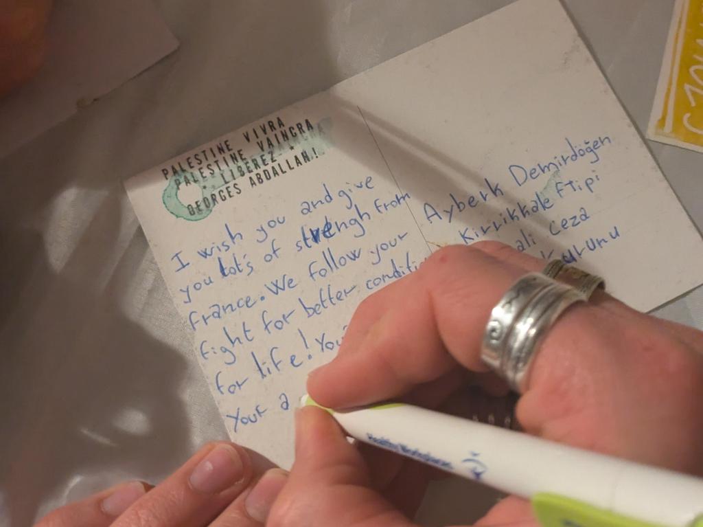 After the panel, postcards were written to the hunger strikers.
