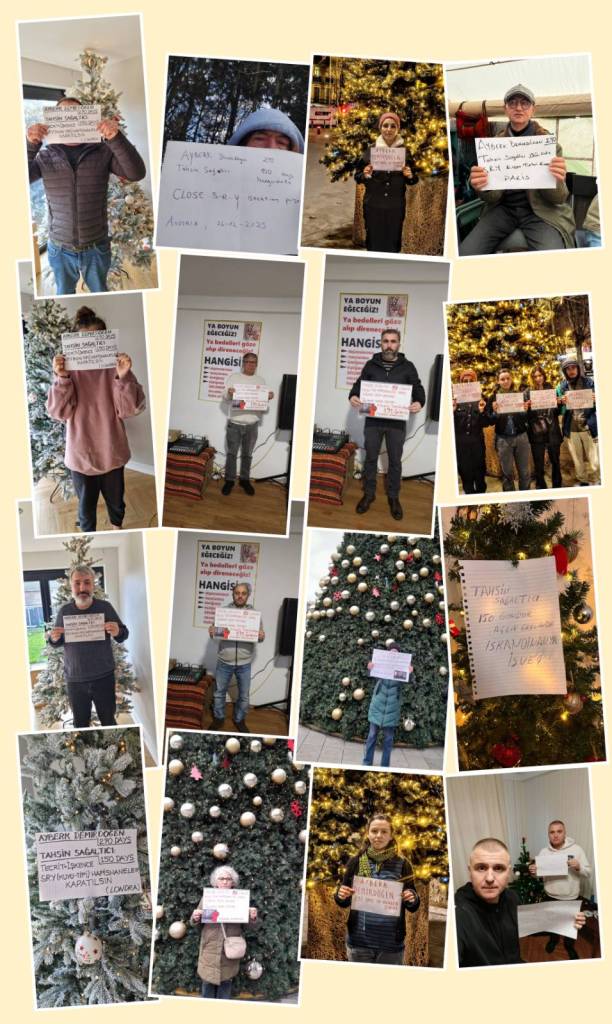 To mark the 290th day of Ayberk Demirdögen and the 150th day of Tahsin Sağaltıcı, solidarity pictures were taken in different countries of Europe on December 26.