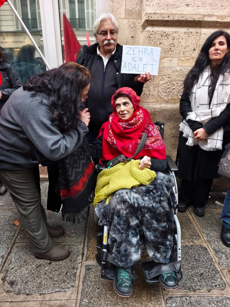 Just a few days before, Zehra was confronted once again with the threat to be extradited to Turkey. On January 12, a court hearing took place in Paris, after the Val de Marne Prefecture filed a third lawsuit for her extradition, which was earlier rejected twice by court decisions. On January 19, the extradition was refused for the third time.