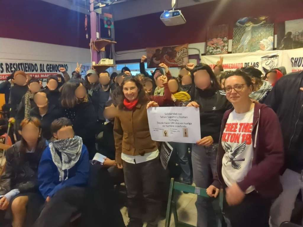 Sükriye called on them to write letters to Tahsin Sağaltıcı, Gürkan Türkoğlu, Hüseyin Özen, and Doğan Karataş, who are currently on an indefinite hunger strike. A printout of their addresses was on the table.