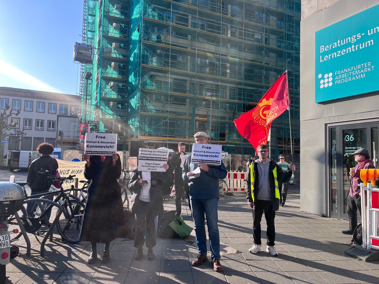 On 18 March, a rally in defence of Mikhail and Alexander Kononovich was held in Frankfurt am Main in front of the Consulate General of Ukraine. The Kononovich brothers, themselves political prisoners, addressed the rally via video link. The demonstration was organised by the Communist Organisation (Kommunistische Organisation). In their address, they described their current situation and, speaking directly to consulate staff, stated that they would be held accountable under the law as accomplices to the crime and would not be able to hide in Europe.