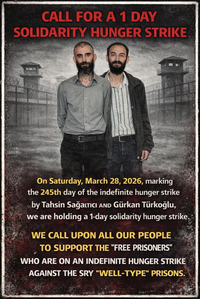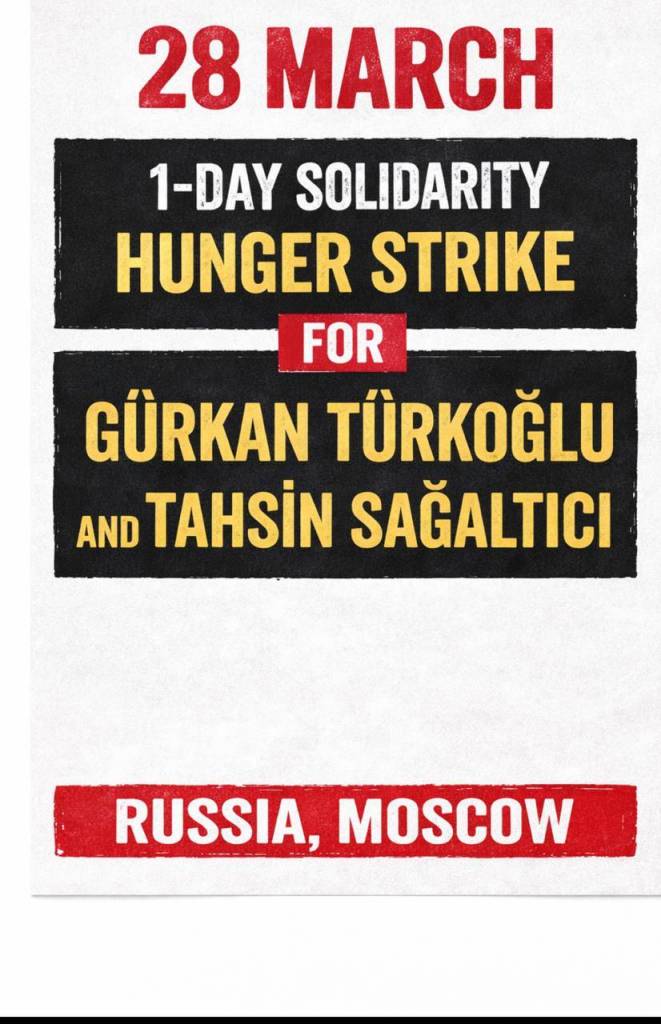 A total of 438 people in various cities across ten countries took part in a one-day solidarity hunger strike on 28 March to draw attention to Tahsin Sagaltici and Gürkan Türkoglu’s indefinite hunger strike, which has been ongoing for 245 days.
