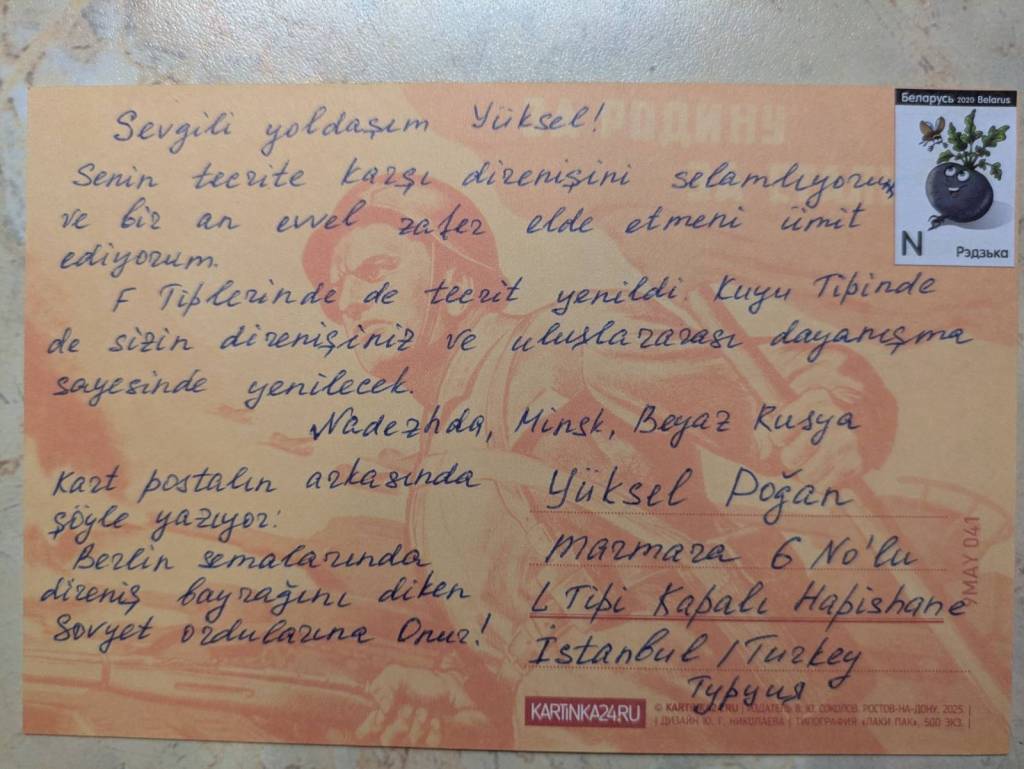 Post card from Belarus to hunger striking prisoner Yüksel Dogan: