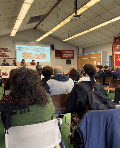 The second panel began with a speech by Mohammed Khatip, Samidoun’s European coordinator. He spoke about the oppression in Palestine, the suffering endured by Palestinian prisoners, and the new death sentence issued by Israel.