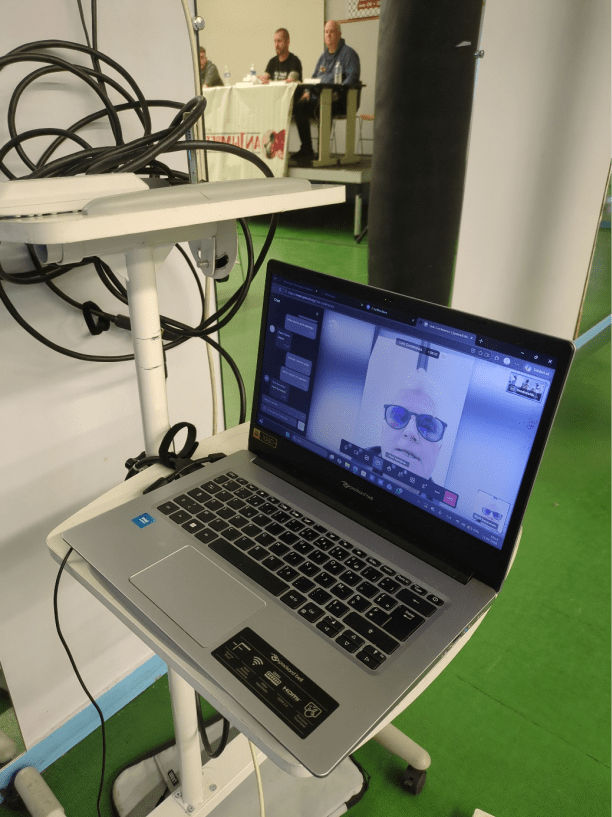 The conference, which lasted from morning until evening, brought together numerous organizations from European countries. From outside Europe, OLEP from Mexico shared a video, and Noel Hamrahan, the lawyer for Mumia Abu-Jamal from the United States, participated online.
