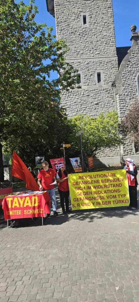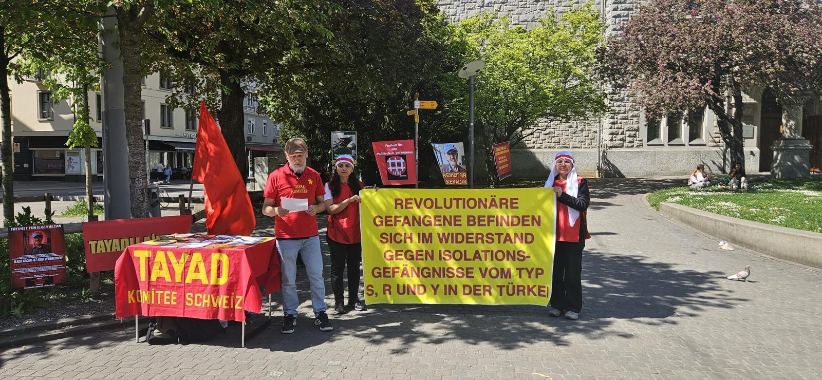 Solidarity action in Switzerland with the hunger striking prisoners, in which also Freedom for political prisoner in France, Ilker Alcan, was demanded.